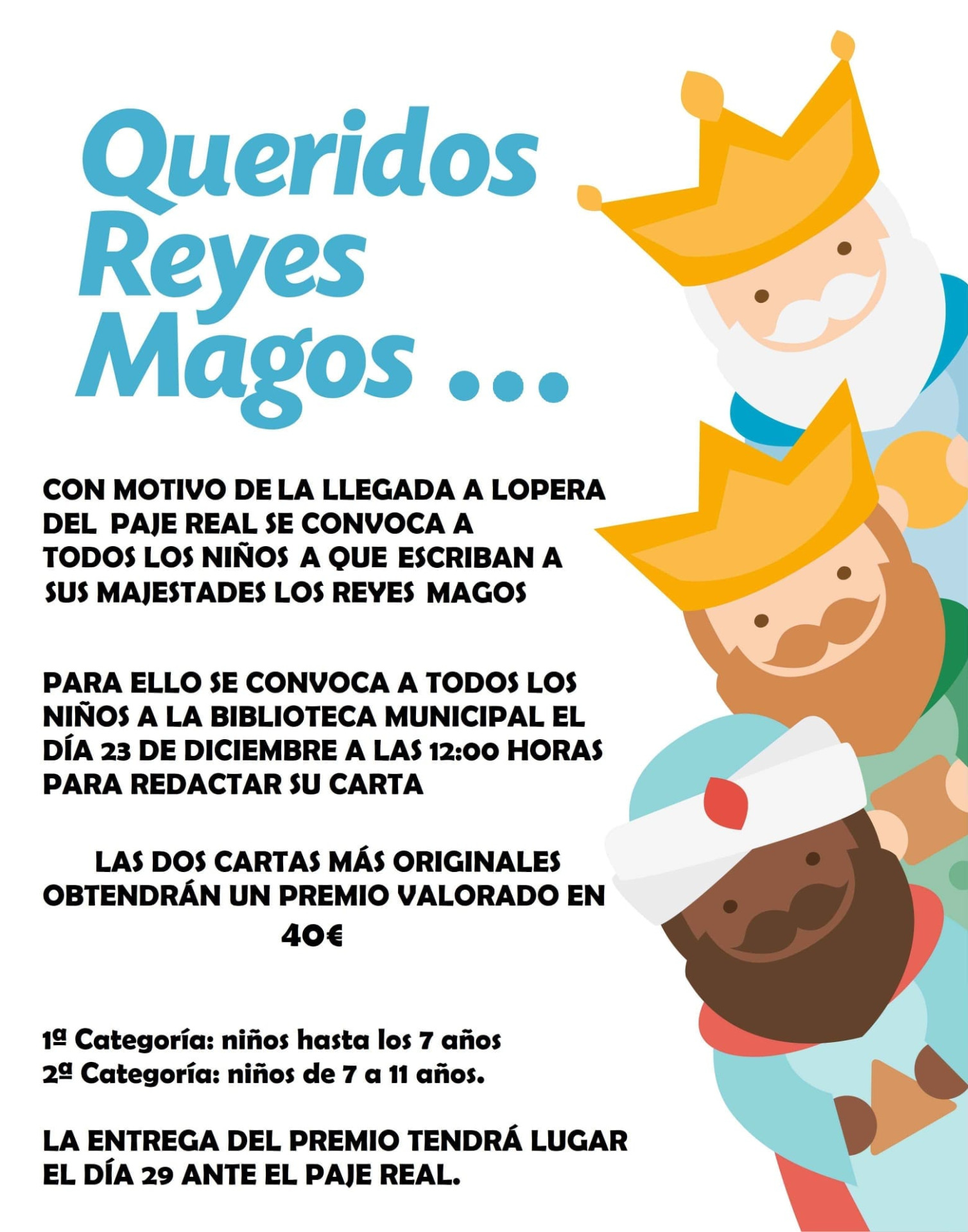El próximo día 23 de diciembre a las 12:00 horas se convoca a todos los niños en la Biblioteca Municipal de Lopera para escribir su carta a los Reyes Magos.
