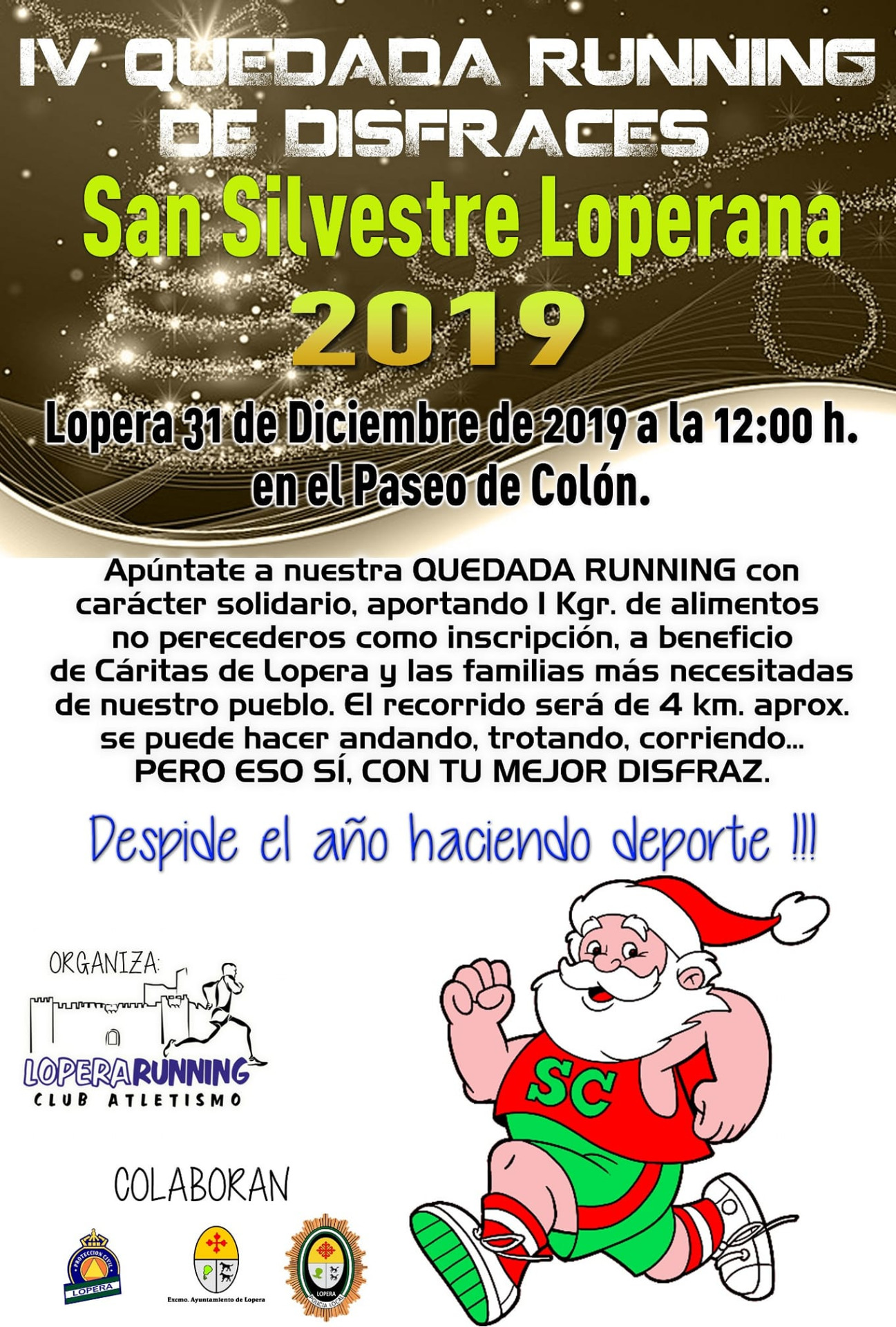 El próximo 31 de diciembre a las 12:00 se celebrará la IV Quedada Running de Disfraces, la San Silvestre Loperana 2019, que como todos los años tendrá carácter solidario con la aportación de 1 kgr. de alimentos no perecederos como inscripción.